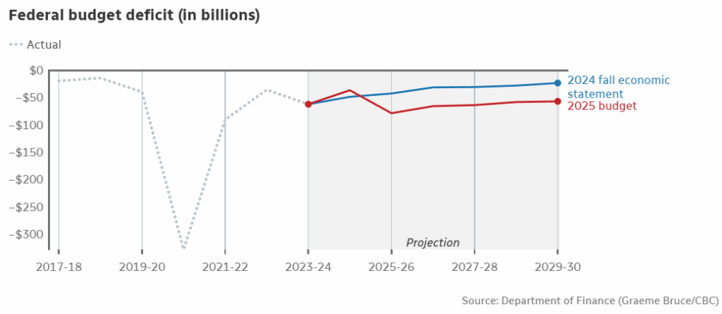 Despite ambitious spending goals, the federal government acknowledges growing deficits — now projected at $78.3 billion, almost double last year’s forecast. The plan is to gradually reduce that deficit to $56.6 billion by 2029-30, with operational spending expected to balance within three years.